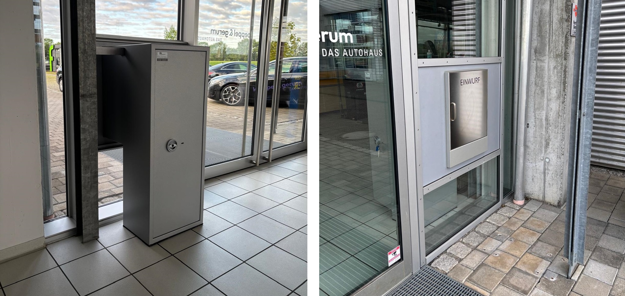 In Sachen Sicherheit vertraut Köppel & Gerum auf Neuscheler. Gerade im Bereich Kundenservice und Flexibilität war man auf der Suche nach einer praktikablen und versicherungskonformen Lösungen, welche man mit der Serie 100 gefunden hatte. Neben der klassischen Nachtannahme, sorgt das System mit seinen 4 Ausgabefächern auch für eine reibungslose, kontaktlose Übergabe von Fahrzeugschlüssel und Dokumente zu jeder Tag und Nacht Zeit. Ein Blickfang hier ist die moderne und zeitlose Gestaltung des Systems. Harmonisch integriert in die bauliche Gegebenheit, aber Service orientiert für die Kunden.